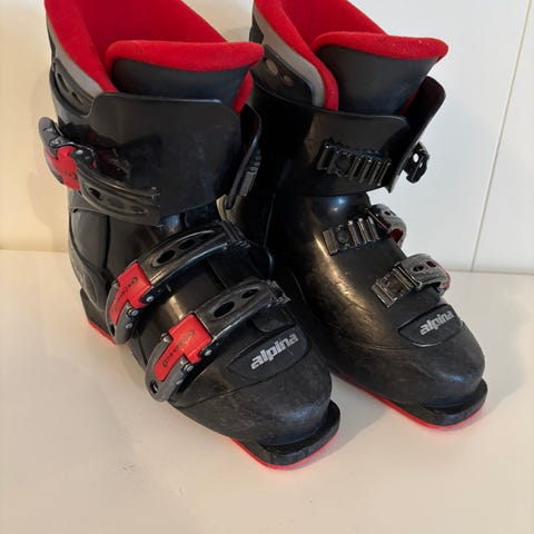 Alpina TJ skisko for barn i størrelse EU 33,5 (MP 215). Modellen har overdel i svart og hvit med enkel spenne/lukking over vristen. Skoene har myk, polstret innersko for komfort og støtte rundt ankelen. Farge: black/white. Egnet for barn som trenger stabile og varme slalomstøvlet til skilek.