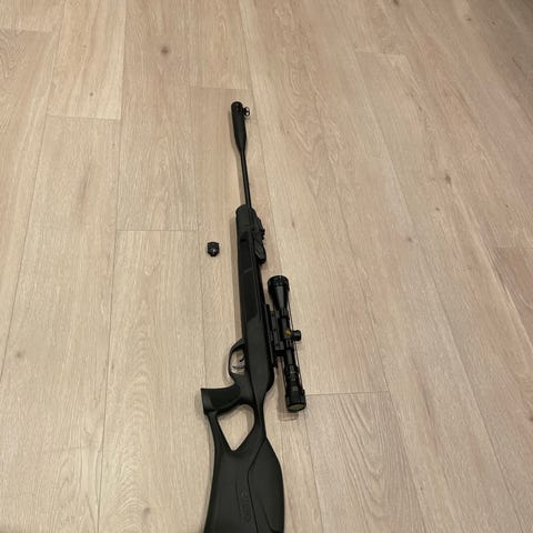 Påmontert kikkertsikte fra Strike med 6x40 som passer bra til kamper eller trening hjemme i hagen.