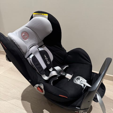 Cybex Sirona M i-Size barnesete for barn opptil 19kg. Barnesetet er i svart stoff og er godkjent etter i-Size-regelverket (UN R129). Setet monteres med ISOFIX og kan brukes både bakovervendt og forovervendt innenfor angitte høyde- og vektgrenser (ca. 45–105 cm, maks 19 kg, hvorav opptil 19kg i bakovervendt posisjon).