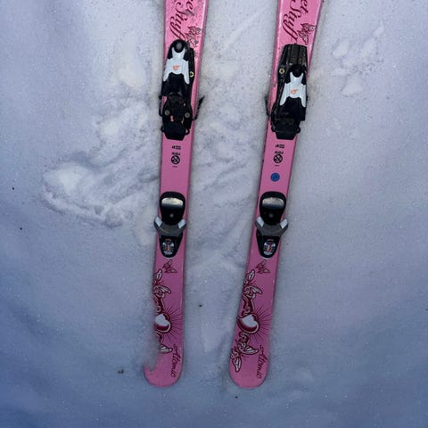 K2 Luv Bug alpinski i lengde 100 cm. Skiene har rosa topp- og såleside med grafiske detaljer i blant annet svart og grønt. Montert med justerbare bindinger (se bilder for type og innstilling). Egnet som barne- eller juniorski til vanlig alpinkjøring i bakke. Skiene leveres som sett med ski og bindinger slik de fremstår på bildene. Sålene er godt satt inn med voks, som du ser på bildene.