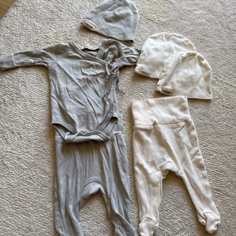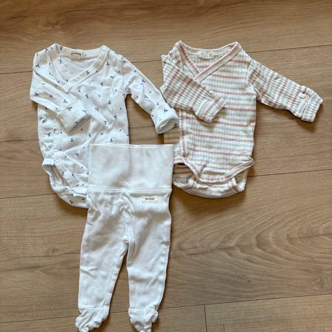 Klespakke i str. 56, med klær fra Lindex og HM. Babyen vår vokste raskt ut av klærne, så de er pent brukt. Ingen flekker eller skader.