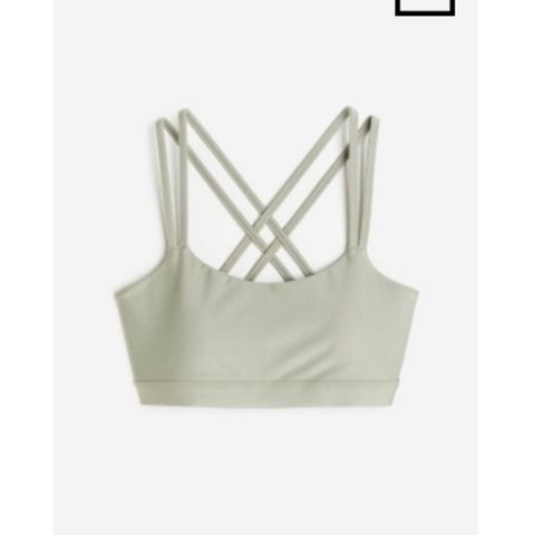 H&M sports-bh for dame i størrelse XL. Modellen er i brun farge med bryterrygg og bred strikk nederst for støtte. Glatt, elastisk materiale som egner seg til trening og annen fysisk aktivitet. Enkel og funksjonell utforming uten synlige lukkinger, med flate sømmer for økt komfort mot huden.