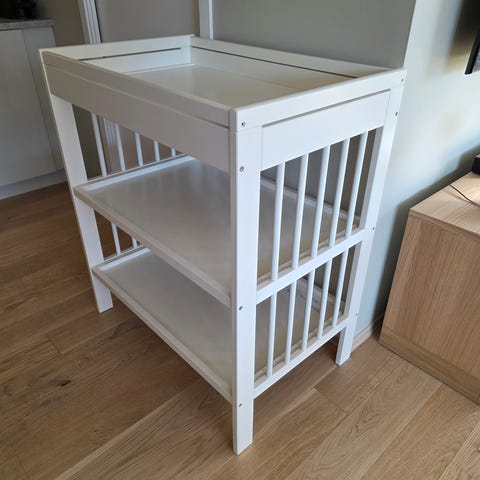 Stellebord smågöra fra ikea. Er med stellematte hvis det er ønskelig, alltid brukt håndduk over. Noen småsår her og der, men kun slike som oppstår ved normal bruk. Er delvis demontert, er nå i 3 deler.