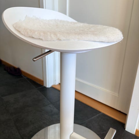 Veldig god barstol PEBRINGE med rygglene fra Jysk i grått stoff og svarte bein. Så vidt noen få merker på beina, ellers veldig fin.