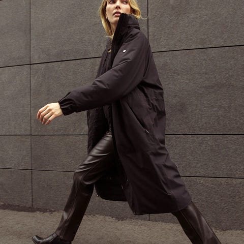 Scandinavian Edition lang dunjakke for dame i størrelse XS. Jakken er blå og har et rett, langt snitt som gir god dekning nedover bena. Den er vattert med dun i horisontale paneler for jevn isolasjon. Jakken har hette, lange ermer og lukking foran med glidelås og trykknapper. Passer som ytterjakke på kalde dager.