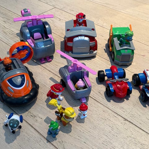 Paw Patrol lekemotorsykkel med figur i rød farge. Motorsykkelen har store hjul, sølvfargede detaljer og fastmontert figur foran. Egnet som lekekjøretøy for barn som liker Paw Patrol og kjøretøytema. Passer til innendørs lek på gulv og andre flate underlag.