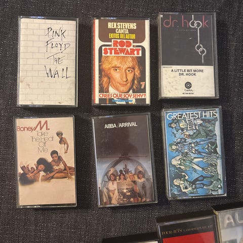 Selger her endel musikk kassetter med forskjellige artister/band.