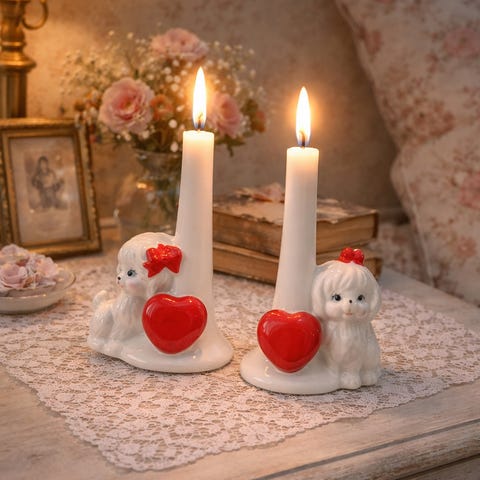 Stearinlys, lysestake, cottegecore, vintage stil.