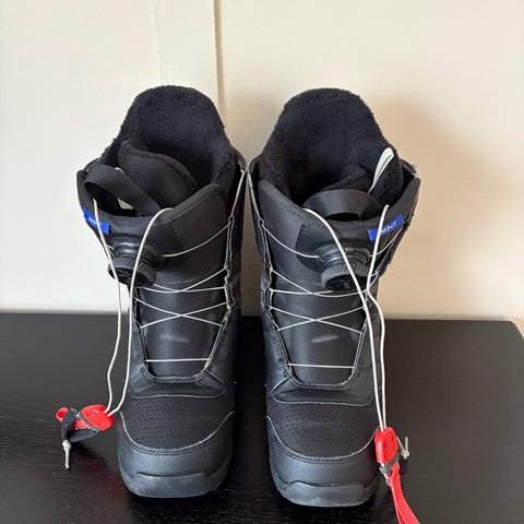 Burton Mint Boa snowboardstøvler for dame i svart. Modellen har Boa-snøresystem med dreiehjul for enkel og jevn stramming. Størrelse 37,5. Overdel i syntetisk materiale med polstret innside for komfort. Passer til snowboardkjøring på ulike underlag.