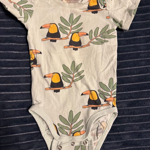 Kortermet body i bomull fra Name It i str.74. Noen flekker som ikke er forsøkt fjernet med flekkfjerner.
