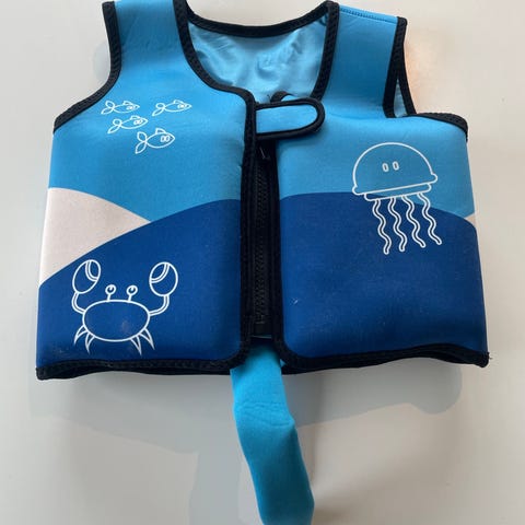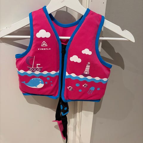 Bestway Swim Safe flytevest for barn i rosa og flerfarget design. Vesten har korte ermer med mønster, frontlukking med glidelås og justerbar stropp med spenne mellom bena for bedre passform. Kantene er avsluttet med lyseblå bånd. Egnet som hjelpemiddel ved lek og svømming i vann under tilsyn av voksen 11-30 kg.
