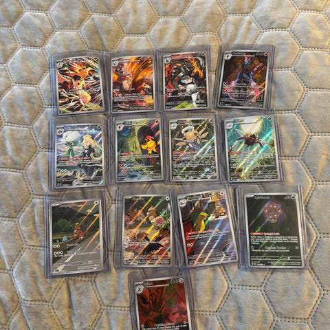 Alt selges samlet og selges som de er. Scizor kortet er litt skadet
