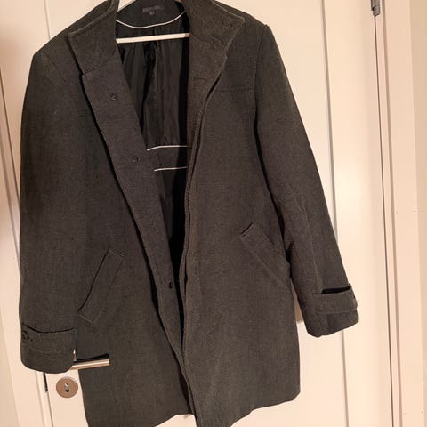 Jakken er svart og laget i polyester. Den har knappelukking foran, skrålommer i sidene og krage. Innsiden er helfôret med teddy-/fleeceaktig materiale for ekstra varme. Yttermaterialet har en semsket, lett skinnlignende struktur.