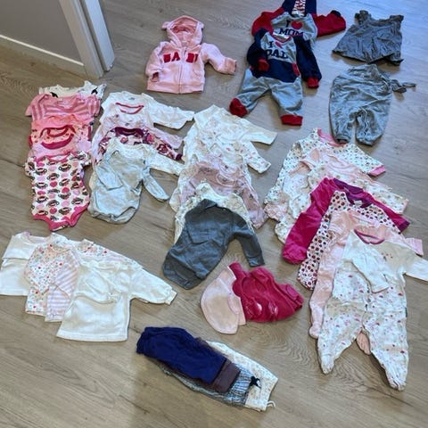 2 poser med Pent brukt jentetøy selges. Her finner du bukser, bodyer, luer, yttertøy. Alt fra str 68-80. Kommer fra røykfritt hjem.