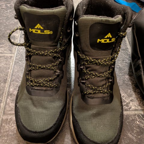 Okaki støvler i størrelse 41. Støvlene har overdel i tekstil og syntetisk materiale med snøring foran. Kraftig yttersåle med grovt mønster gir godt grep. Modellen har ankelhøy skaft og hempe bak for enklere av- og påtaking Egnet som tursko eller fritidsstøvler i variert terreng