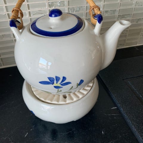Veldig koselig tekanne som holder seg varm vha telys under.