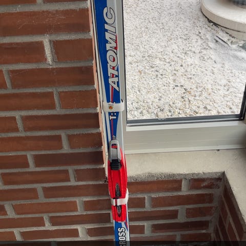 Rottefella langrennsski med tilhørende bindinger og staver. Skiene har klassisk spenn og er utstyrt med Rottefella-bindinger som passer til kompatible langrennsstøvler. Farge på ski er rosa med mønster, stavene er lyse med håndstropper. Lengde på ski er 140 cm, høyde staver er 110 cm.