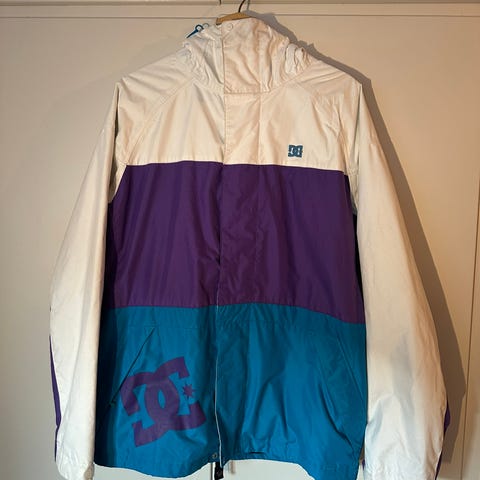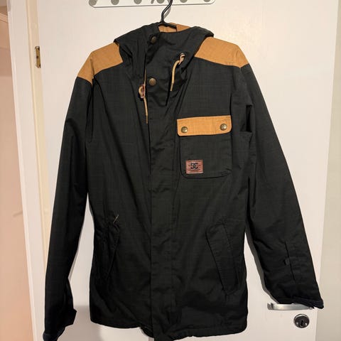 DC jakke til vinter. En eldre skijakke som bare er blitt liggende. Brukt men mye bruk igjen. Et sort merke inni jakke som kanskje er mulig å vaske bort. Ser også små sorte prikker på baksiden av jakken når man ser nærme. Selges som den er.