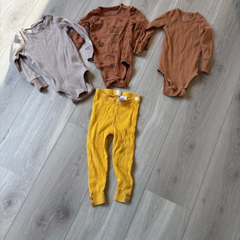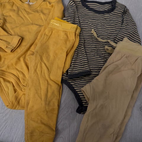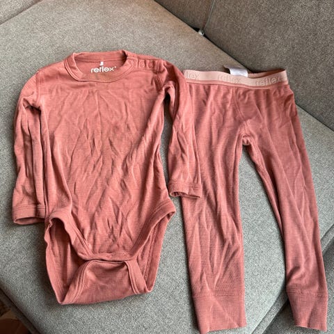 2 ullsett fra Reflex strl 86-92. Noe flekker og et lite hull på kne på en av buksene. Perfekt som underlag til barnehage.