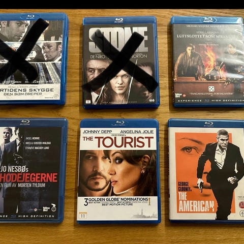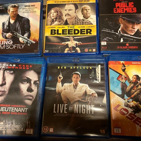 Pakke med ulike Blu-ray filmer i sjangrene action, drama og thriller. Blant titlene som kan ses på bildene er blant annet «Siberia», «T2 Trainspotting», «Hereafter», «Ip Man», «Prisoners of the Sun», «Legend of the Fist», «The Circle», «The Tower», «Det som ingen vet» og «Contagion». Alle filmene er i Blu-ray-format i standard plastomslag. Egner seg for avspilling på Blu-ray-spillere som støtter regionen angitt på hver enkelt plate.