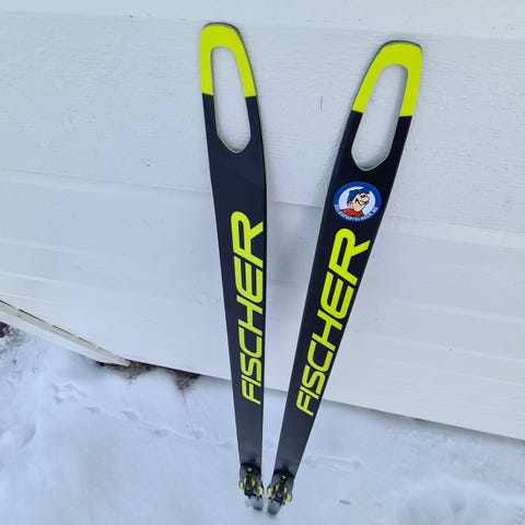 Skiene er blitt målt opp med eikemåler for å finne riktig vekt for skiene. Skiene vil gå best om man har en vekt mellom 12-16kg.