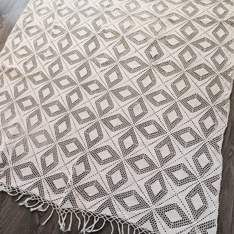 Kid sengesett i bomull med rutete mønster i rosa, hvitt og mørke striper. Sengesettet består av dynetrekk og putevar i vevd bomullstekstil. Tekstilet har knappelukking nederst på dynetrekket. Passer til vanlig enkeltdyne, se mål i annonsen dersom oppgitt av selger. Materialet er 100 % bomull, som kan vaskes i maskin etter anvisning på vaskelappen.