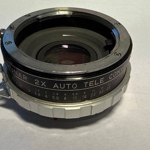 I tillegg følger en 2x Teleplus konverter for Canon-FD, som monteres mellom kamerahus og objektiv for å doble brennvidden til objektivet som brukes. Begge deler er beregnet for bruk med utskiftbare objektiver med Canon-fatning. Etuier til oppbevaring følger med, som vist på bildene.