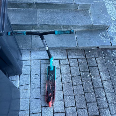 Sparkesykkel av type triksesparkesykkel i grønn farge med sorte håndtak. Modellen har små hjul som er egnet for triksing og kjøring på asfalt eller betong. Styret er rett og utstyrt med grep for bedre kontroll. Passer til bruk i skatepark eller til enkel transport over korte avstander. Anbefales til barn eller ungdom som ønsker en enkel triksesparkesykkel.
