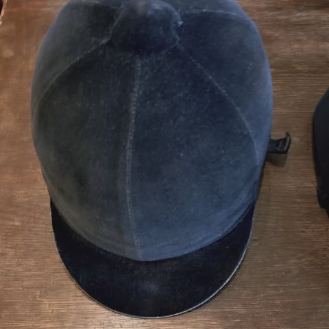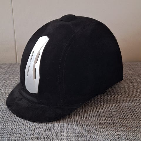 CRW ridehjelm i mørk blå farge. Hjelmen har justerbar stropp under haken og ventilasjonsåpninger bak. Innvendig er det polstret fôr og nettingpartier for bedre komfort. Egnet til ridning og annen hestesport der hjelm er påkrevd.