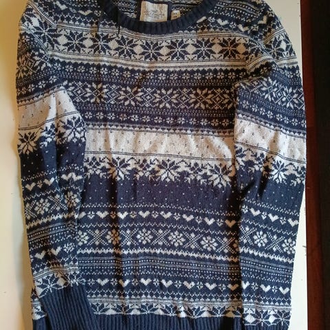 H&M genser for dame i størrelse XS. Genseren er blå med mønster og er laget i ullblanding. Passer som varm og myk overdel til hverdagsbruk eller lag-på-lag i kaldere vær. GAP genseren er i bomull, hullmønster og blåmelert. Selges samlet 250, eller pr stk 150.