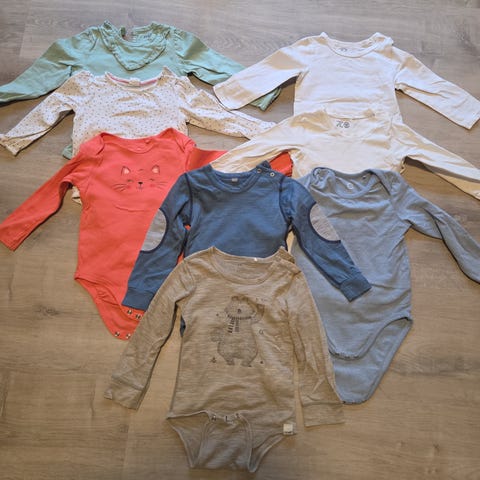 En fra Name It i str 68 i rosa med blomster,det er et lite hull ved halsen. Ingenting å si for bruken.