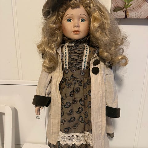 Klovnedukke med tekstilklær fra Drøbak.