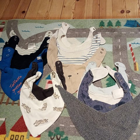 Name it smekker for gutt i lys blå og marineblå. Smekkene har fleece på baksiden.