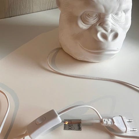 Designer lampe av engelske Sophie Chandler. Hun var en designer som brukte resirkulering eller ombruk. Lampen er en salatbolle som var i produksjon som ble omgjort til lampe. Lampen er fylt med 15 fungerende glødepærer og stilig gul ledning. Blikkfang i rommet!