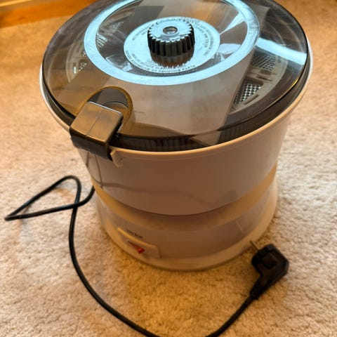 Egnet til skrelling av poteter og lignende grønnsaker på kjøkkenet for å forenkle forberedelse av matlaging. Hentes på Rykkinn. Sender ikke.