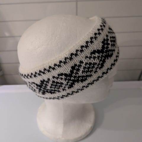 Nytt ubrukt håndstrikket dobbelt Cortina pannebånd strikket i garnet Alpakka Forte. 80% alpakka 20% nylon. Mykt og godt. Passer ca 8-10 år