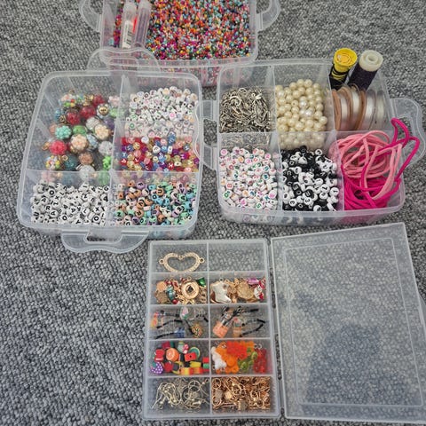 Perlene egner seg til hobbyprosjekter som armbånd, halskjeder, nøkkelringer og andre smykker eller dekorasjoner. Oppbevaringsboksene har flere rom som gjør det enkelt å holde de ulike typene perler adskilt og oversiktlige under bruk og lagring.