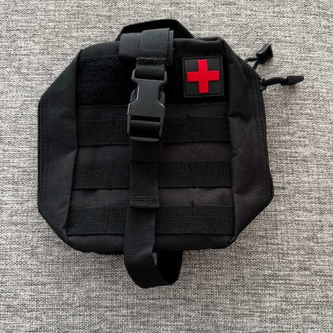 Den Norske Turistforening bag i blått med røde detaljer. Baggen er Sydd av en eldre Trollveggen jakke og er en del av deres satsing mot bærekraft