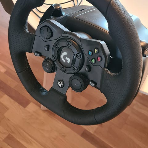 Jeg selger her mitt Logitech G923-ratt med pedaler, som er i veldig god stand og ikke har blitt brukt mye.