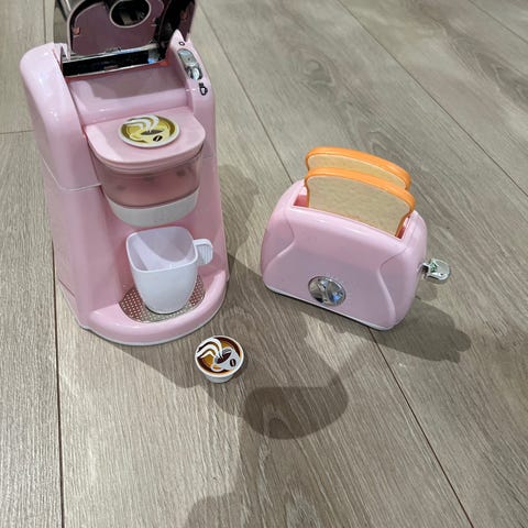 Selger leker kaffemaskin og brødrister med lyd.