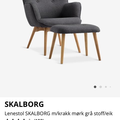 Lite brukt lenestoler med krakk selges rimelig, ca 1 år gammelt. 2 stk lenestoler med krakk kjøpt på Jysk, merke Hasselager. Ny pris på dette er ca 8000 kr.