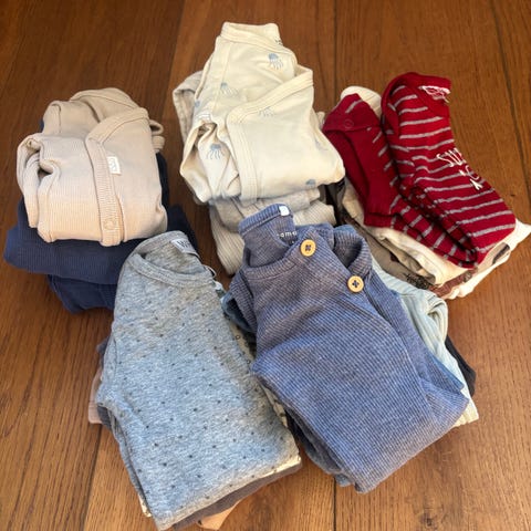 Godt brukt og fint brukte klær i strl 62, siste bildet er strl 68. Diverse merker, newbie, hummel, cubus, hm, lindex, reflex, en sparkedress fra Ralph Lauren, blant annet.