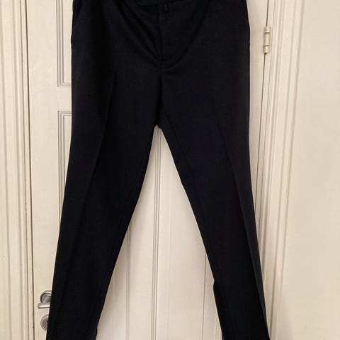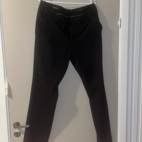 Armani bukse for herre i størrelse M med livvidde W40. Buksen er svart og laget i 50 % bomull 50% lin Klassisk modell med beltehemper, gylf med lukking foran og lommer bak. Passer til hverdagsbruk eller mer formelle anledninger avhengig av styling.