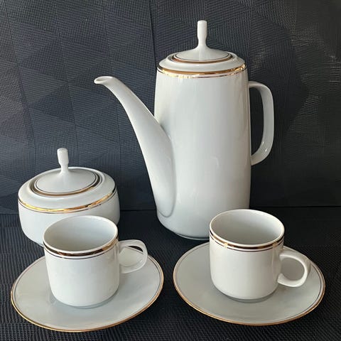 Porselen kaffeservise hvitt med gullkant og dekor