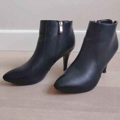 Lite brukt og stilige XIT svarte sko i imitert semsket skinn str 39. På bildene ser de litt lysere ut noen plasser, det er pga sollyset. De er helt svarte.
