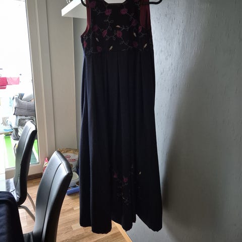 Den har mørk ytterfarge med en blågrønn innside og lukkes øverst i halsen. Passer til Maxemilia festdrakt.