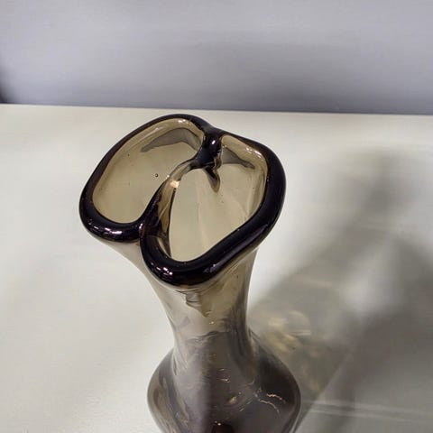 retro glass, 70-tall, designvase, svensk glass, aubergine glass, kunstglass, vintage interiør, skandinavisk design