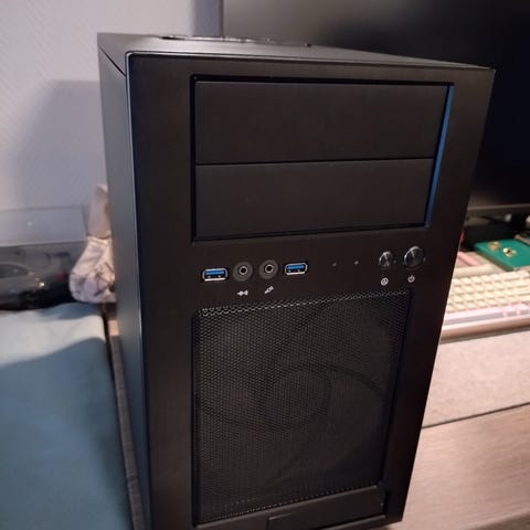 Svart kabinett med en vifte. Passer det meste av komponenter, atx m atx m itx osv...