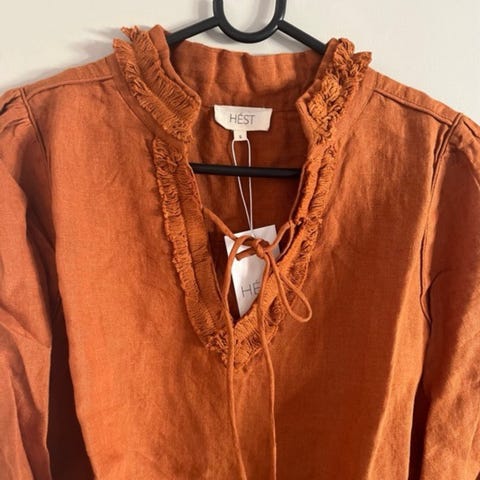 Hest bluse i størrelse S/M. Blusen er svart og laget i 100 % modal, som gir et mykt og lett materiale. Passer til hverdagsbruk eller mer formelle anledninger, og kan kombineres med både bukser og skjørt.