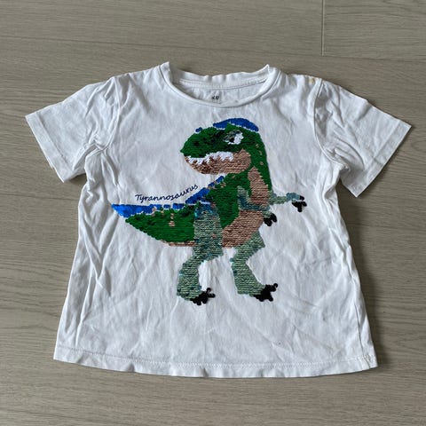 T-skjorte med vendbare paljetter. Stryk opp/ned for å endre farge – supergøy effekt som barna elsker!